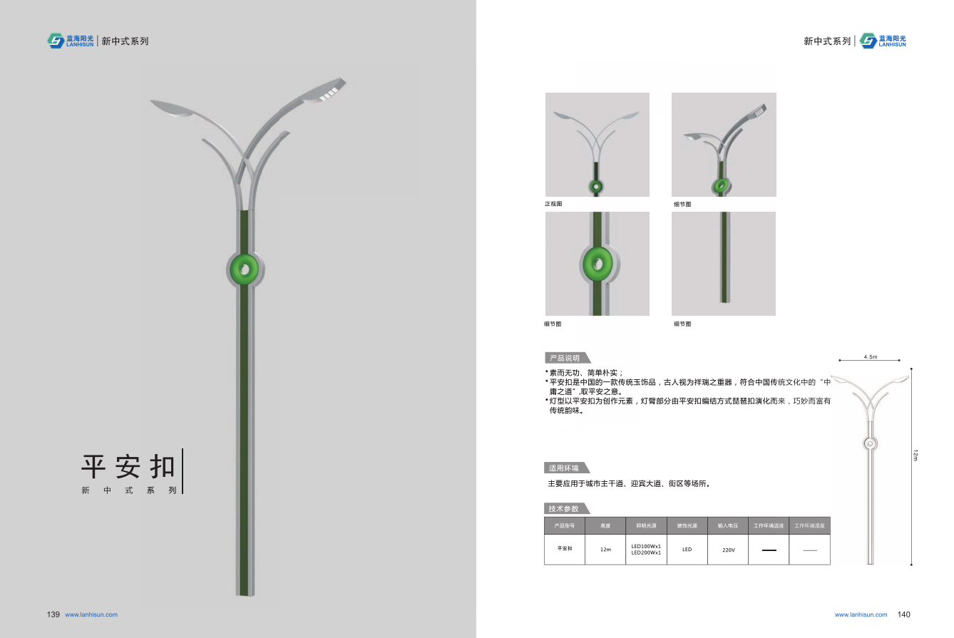1、高度為6-16米; 2、花葉光源為2組LED光源,色溫2500-6500K,每個光源功率為60-300W; 3、LED驅動電源壽命可達五年; 4、整體熱鍍鋅噴塑,保證燈桿15年不生銹; 5、可以根據使用地區的地域文化、產業特點等進行文化定制;