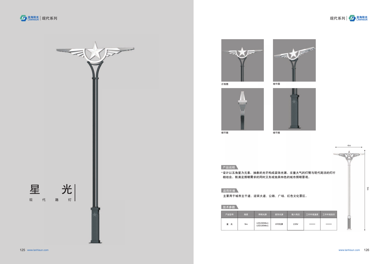 1、高度為6-16米; 2、光源為2組LED光源,色溫2500-6500K,每個光源功率為60-300W; 3、LED驅動電源壽命可達五年; 4、整體熱鍍鋅噴塑,保證燈桿15年不生銹; 5、可以根據使用地區的地域文化、產業特點等進行文化定制;
